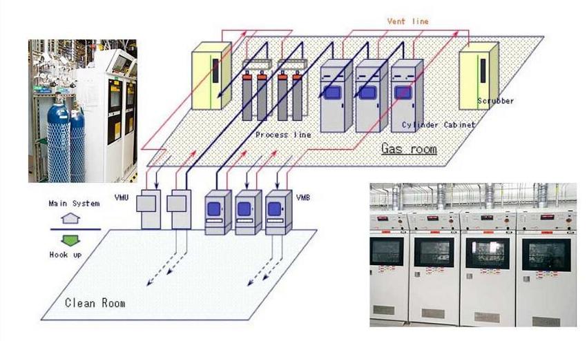 1.對于不同特性的氣體,要規劃獨立的供應區域,一般分為三個區:腐蝕性/毒性氣體區、可燃性氣體區、惰性氣體區,將相同性質的氣體集中加強管理,可燃性氣體區要特別規劃防爆墻與泄漏口,若空間不足,可考慮將惰性氣體放置與毒性/腐蝕性氣體區。