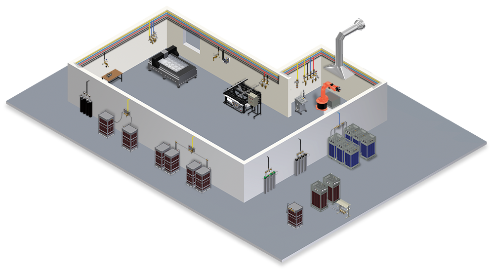 1、配有專門的控制設備,以排除每次更換氣瓶時引入的雜質,確保管路氣體終端的純度。