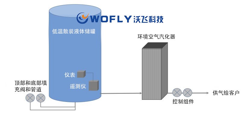 在晶圓廠內,根據氣體的用途和性質,氣體可以以不同的方式儲存和分配。大容量大氣通常儲存在大型低溫液體儲罐中,例如圖 1 中以示意圖形式顯示的儲罐。這些儲罐本質上只是大型“杜瓦瓶”容器,內部容器包含包裹在外殼中的低溫液體內容器和外殼之間的高真空。真空是將液體保持在低溫下的最佳絕緣材料。除了低溫儲存,管式拖車通常用于現場儲存大量大氣。