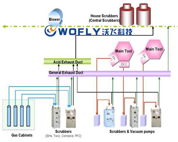 隨著半導體行業的蓬勃發展,對其配套項目也提出了更高要求。特種氣體供應沒有形成有效的系統,鋼瓶凌亂,管理混亂,不相容氣體混放等問題比較嚴重,極大的影響到用氣安全。那么特氣管道工程中氣體廢氣如何處理?今天由深圳沃飛科技有限公司的工作人員為大家介紹: