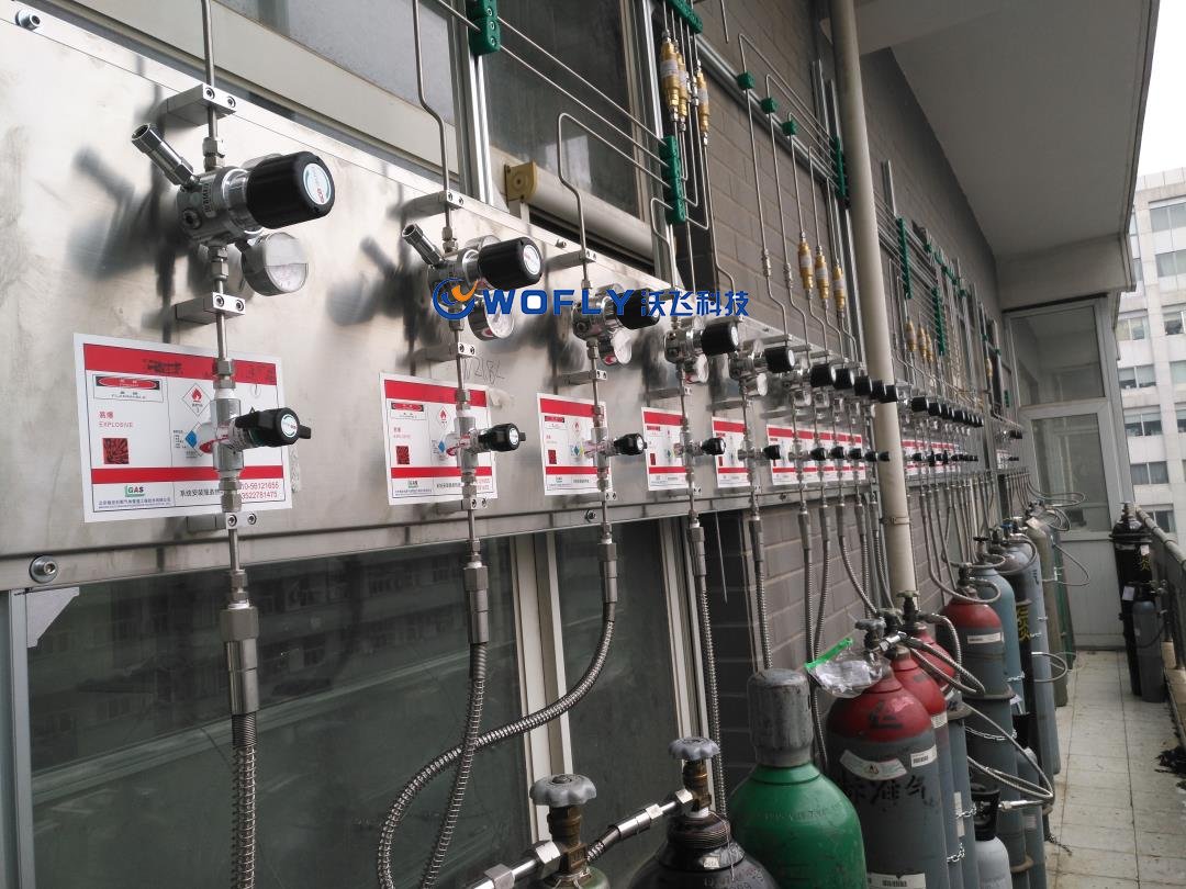 現代實驗室在檢測分析中經常用到H2、C2HC、O2、N2、Ar、He等各種氣體。傳統的實驗室供氣方式是在每個用氣點附近設置一個氣瓶柜,造成重復建設,帶來安全隱患,影響室內美觀。集中供氣因為它的安全、方便、經濟、美觀已成為實驗室發展和建設的大趨勢